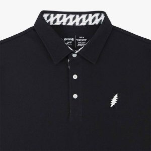 Grateful Dead Simple Bolt Pique Polo in Black An elevated expression of polo shirting fashioned in a premium pique fabric. Inherent in this innovative fabric is its distinctive weave allowing it to be durable and breathable. Finished with a knit collar and three-button placket.This classic Grateful Dead Pique Polo is crafted with 100% cotton materials…