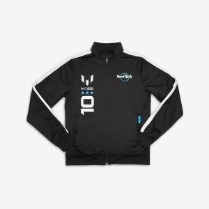 Messi x Hard Rock Track Jacket Zip Up Meet our limited edition Messi x Hard Rock Zip Up Jacket. Featuring white stripes and a pop collar. Elevate your activewear game, this track jacket is made to move with you. Made in black noir performance fabric, with functional pockets, at front left it features a modern…