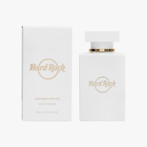 Hard Rock Women’s Fragrance is a warm, floral, and amber scent in a chic lacquered white and gold bottle.