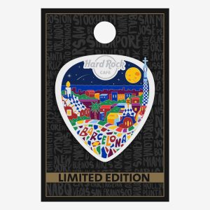 Experience Barcelona’s artistic brilliance under the stars with this guitar pick-shaped pin! A glittering white border, vivid cityscape, and mosaic-inspired design capture the spirit of summer nights in one unforgettable collectible!