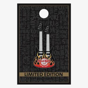 The Limited Edition Flaming Double Neck Guitar Core Pin is part of a bold, high-impact Pin Series built around Hard Rock’s most recognizable silhouette. Sculpted in a double-neck guitar shape, it features polished silver finishes, sharp raised contours, and stylized flames that surge from the base. Each city version includes a clean printed name near…