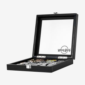 Square Pin Collection Display Case Display your pins proudly in our new Square Pin Case. Black faux leather creates a soft feel to the case, while a silver clasp closure and subtle Hard Rock logo complete the design.