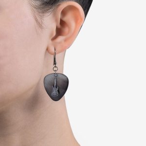 Hematite Guitar Pick Earrings Meet our Hard Rock Hematite Guitar Pick Earrings. A bold conversation piece for any jewelry collection our Hard Rock guitar pick earrings are crafted as a great contrast to any outfit. Dangling hematite pick earrings are accented with detailed mini guitars making these statement earrings a bit edgy, yet delicate and…