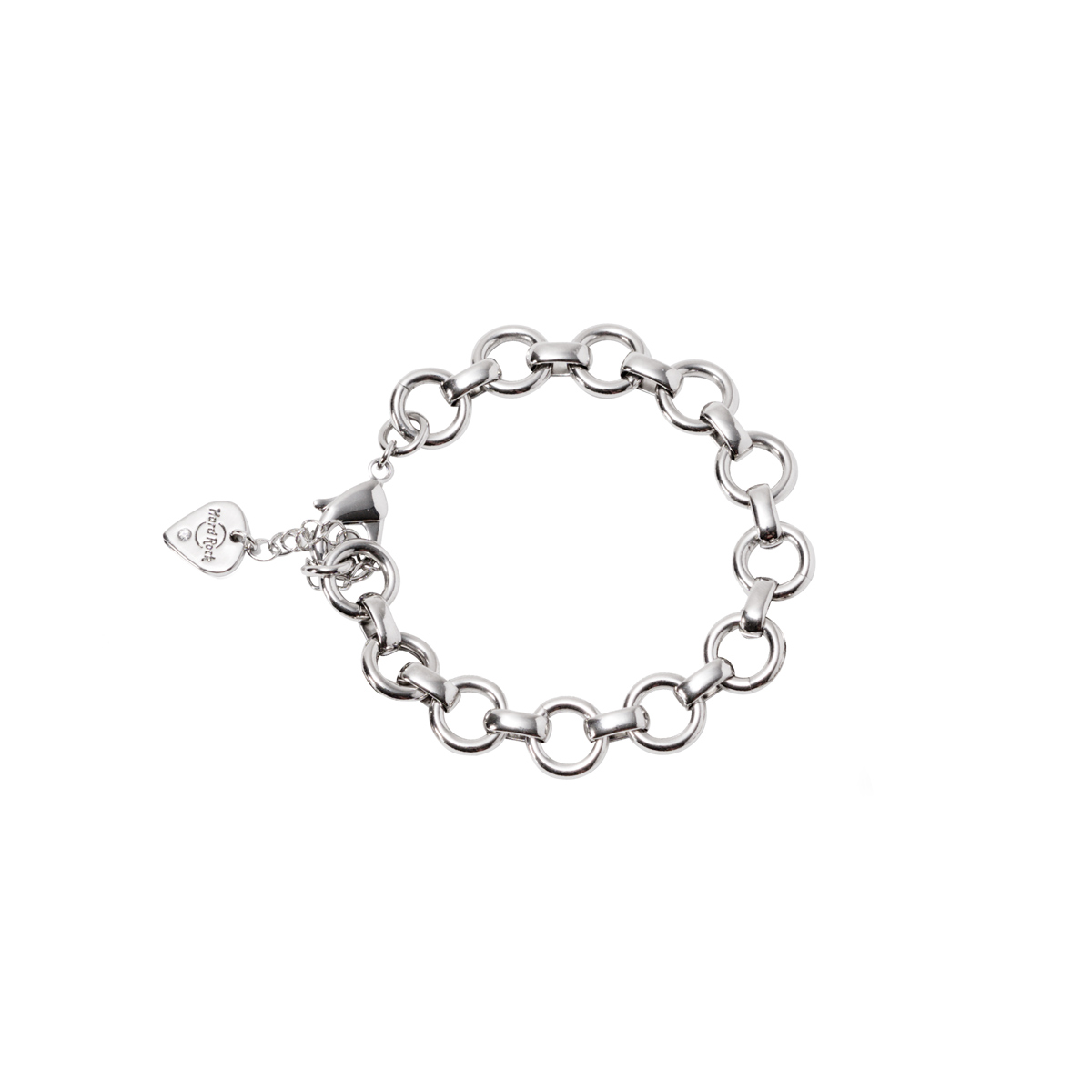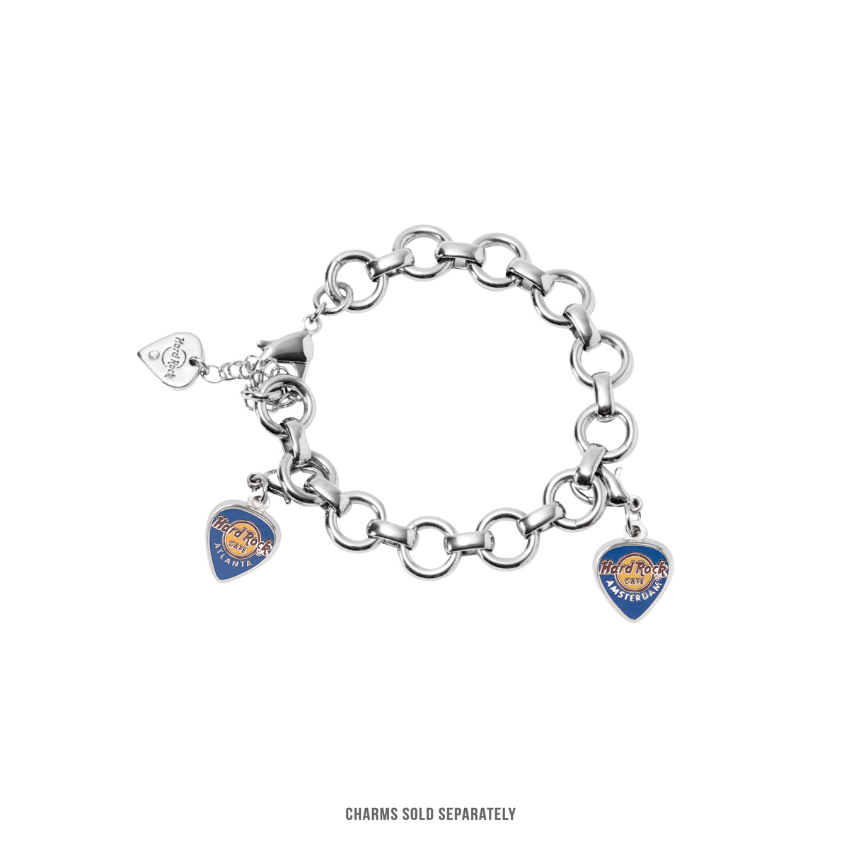 Oval Link Charm Bracelet Jazz up your jewelry box and collect every unforgettable Hard Rock moment with this simple silver starter bracelet. Easily add new charms to each oval link and commemorate your favorite destinations with a funky fashion piece that goes perfectly with everything in your closet.