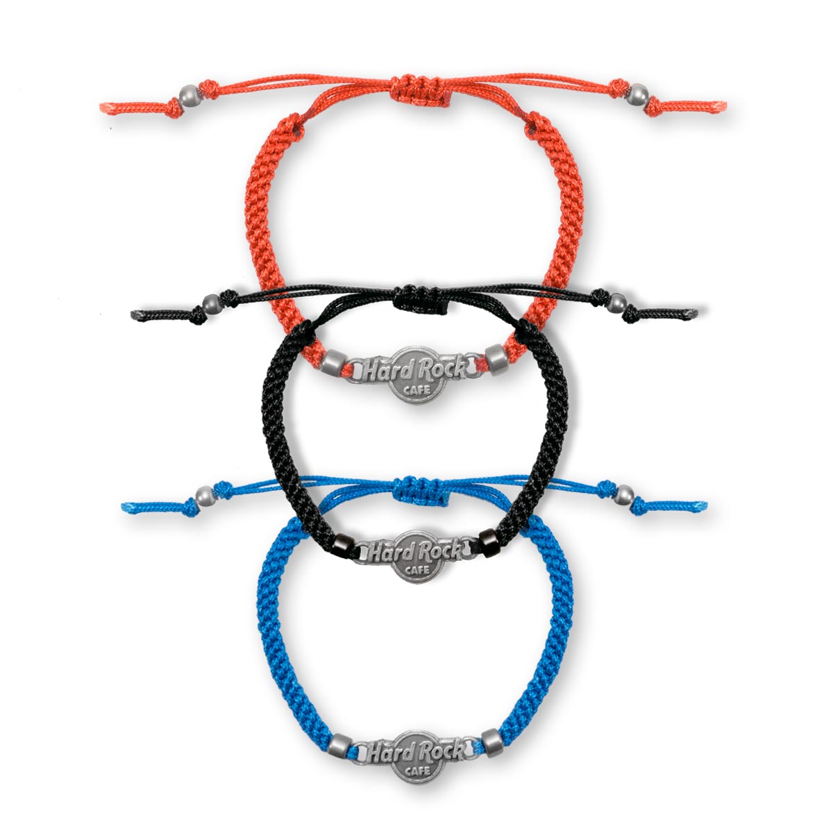 Red Braided Friendship Bracelet This beautifully braided Hard Rock logo friendship bracelet features easy adjustable pull-string closure and lightweight zinc alloy Hard Rock logo charm and beads. Length extends 7in-10in to fit around most size wrists.